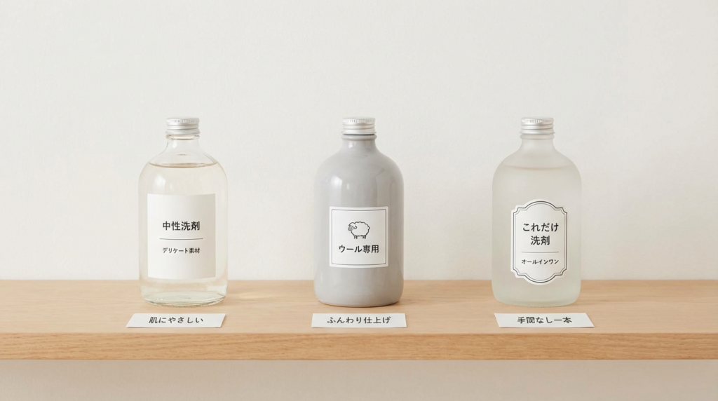 - 万能タイプ: これだけ洗剤(カシミヤ以外も使える) → https://family929.stores.jp/items/68734c6622176fc9fa586445