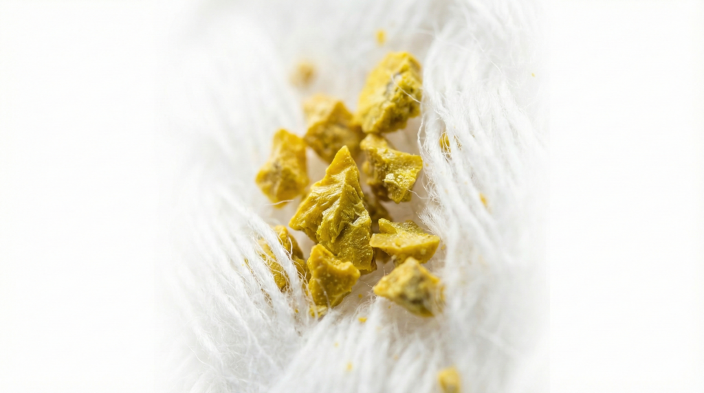 このネバネバが繊維に絡みつくと、乾燥しても取れません。 さらに、これらが酸化すると頑固な**「黄ばみ」**の原因になります。「ちゃんと洗ってしまったはずなのに、翌シーズン出したら黄色いシミが…」という現象の一因は、これなのです。