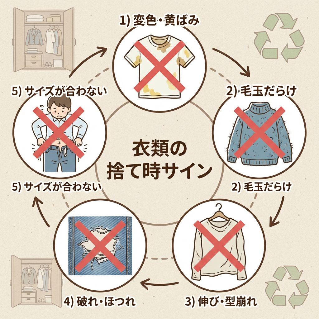 ✅ 5つのサインに当てはまったら即処分(変色・毛玉・伸び・破れ・サイズ不適)