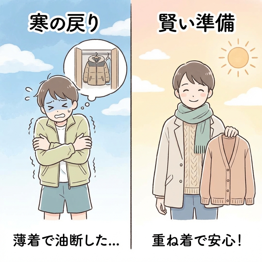 ✅ 薄手のアウター1〜2着は残しておく(寒の戻り対策)