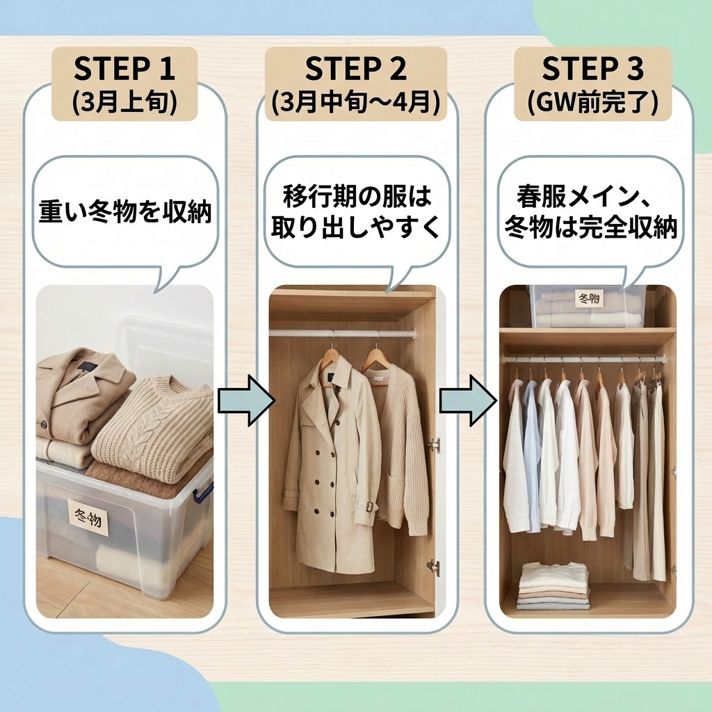 【ステップ2】3月下旬〜4月中旬:移行期の服も段階的に収納