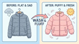 クリーニング代にお悩みの方必見!小倉南区のプロが教える、ダウンジャケットを自宅で「失敗なく」「ふわふわ」に洗う方法。噂の「これだけ洗剤」とテニスボールを使った裏技、他社洗剤との比較まで徹底解説。ペチャンコダウンも復活させましょう!